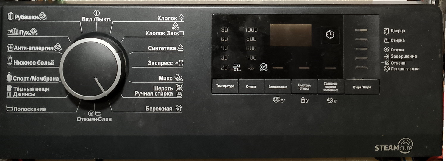 У этого аппарата вышел из строя селектор программ, силовые контакты грелись так, что деформировался корпус. Мозги выжили, прошивка считалась штатно. После замены селектора машина работает ноамально.