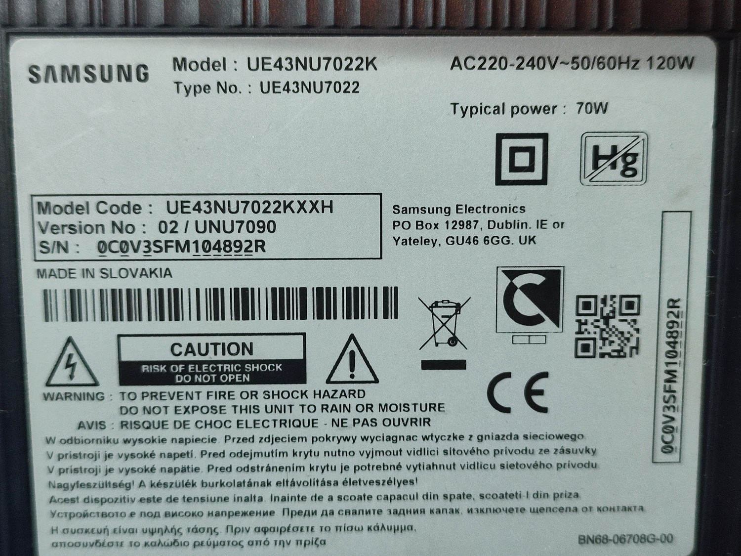 Прошивка от ТВ с серийным номером KAMPLC*****, изготовлен в декабре 2013. Был ремонт БП.