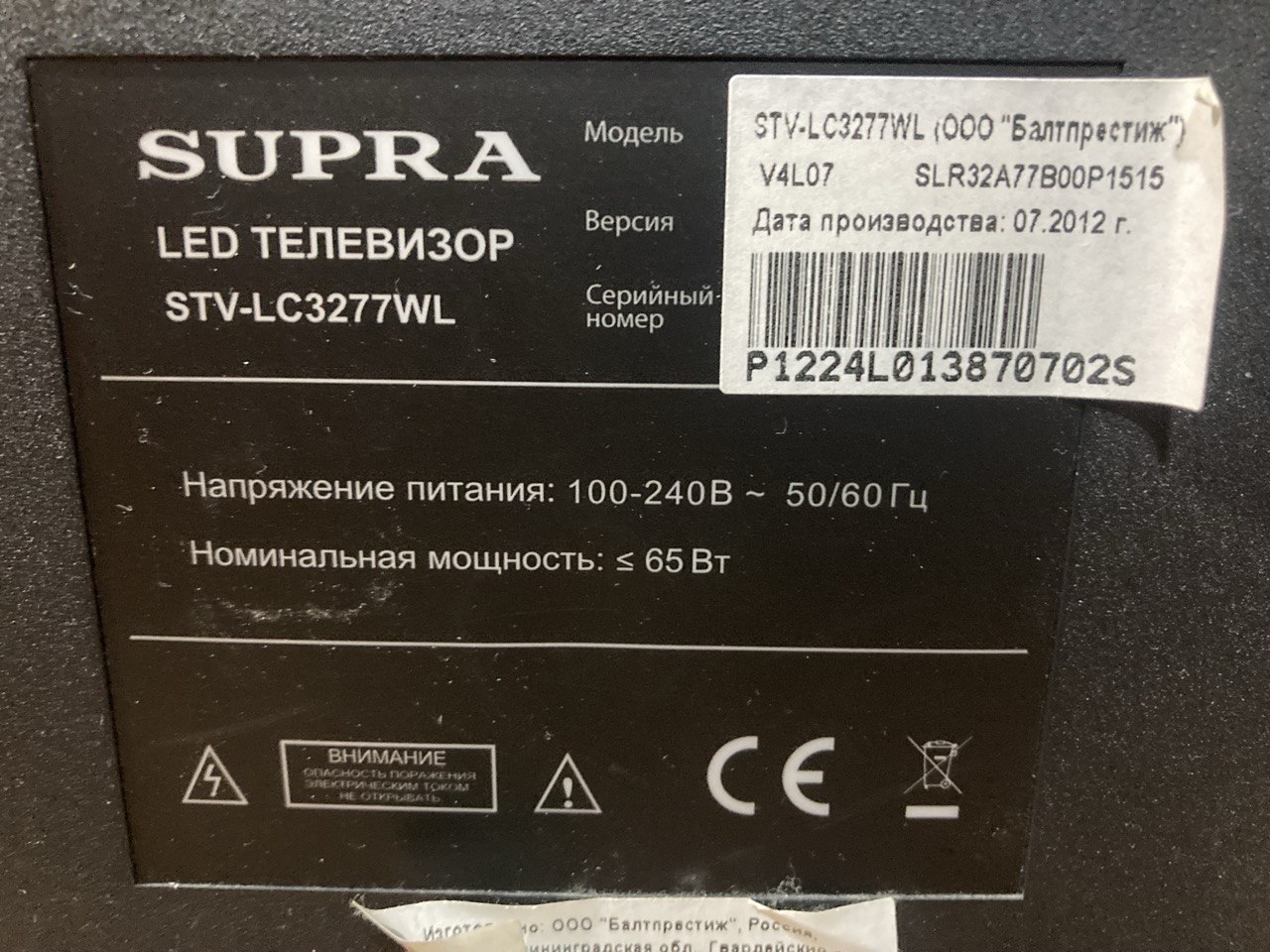 ARTEL 6500/24A Шаси:JUG7.820.1372 LSOD2012-7-12 panel: ECG236MB_LC3