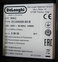 Считана с кофемашины DELONGHI ECAM320.61.G