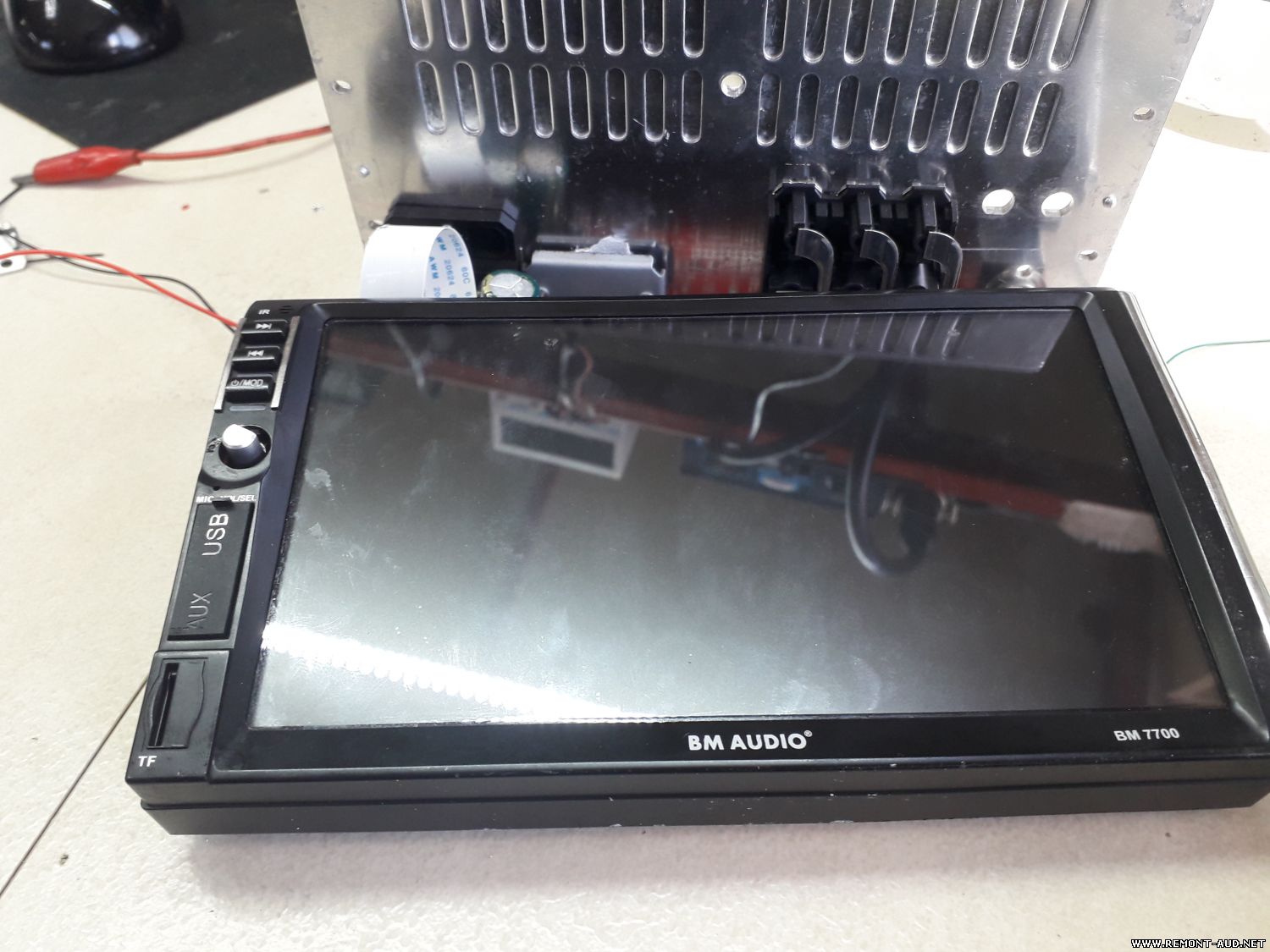 Данная китайская автомагнитола пришла в ремонт с неисправностью: НЕТ ЗВУКА ни на одном из 4 выходных каналах. Остальное всё было исправно: включается, полностью корректно управляется: с пульта, кнопок и сенсора! Хозяин магнитолы сказал, что всё отлично работало, как вдруг, самопроизвольно пропал звук...