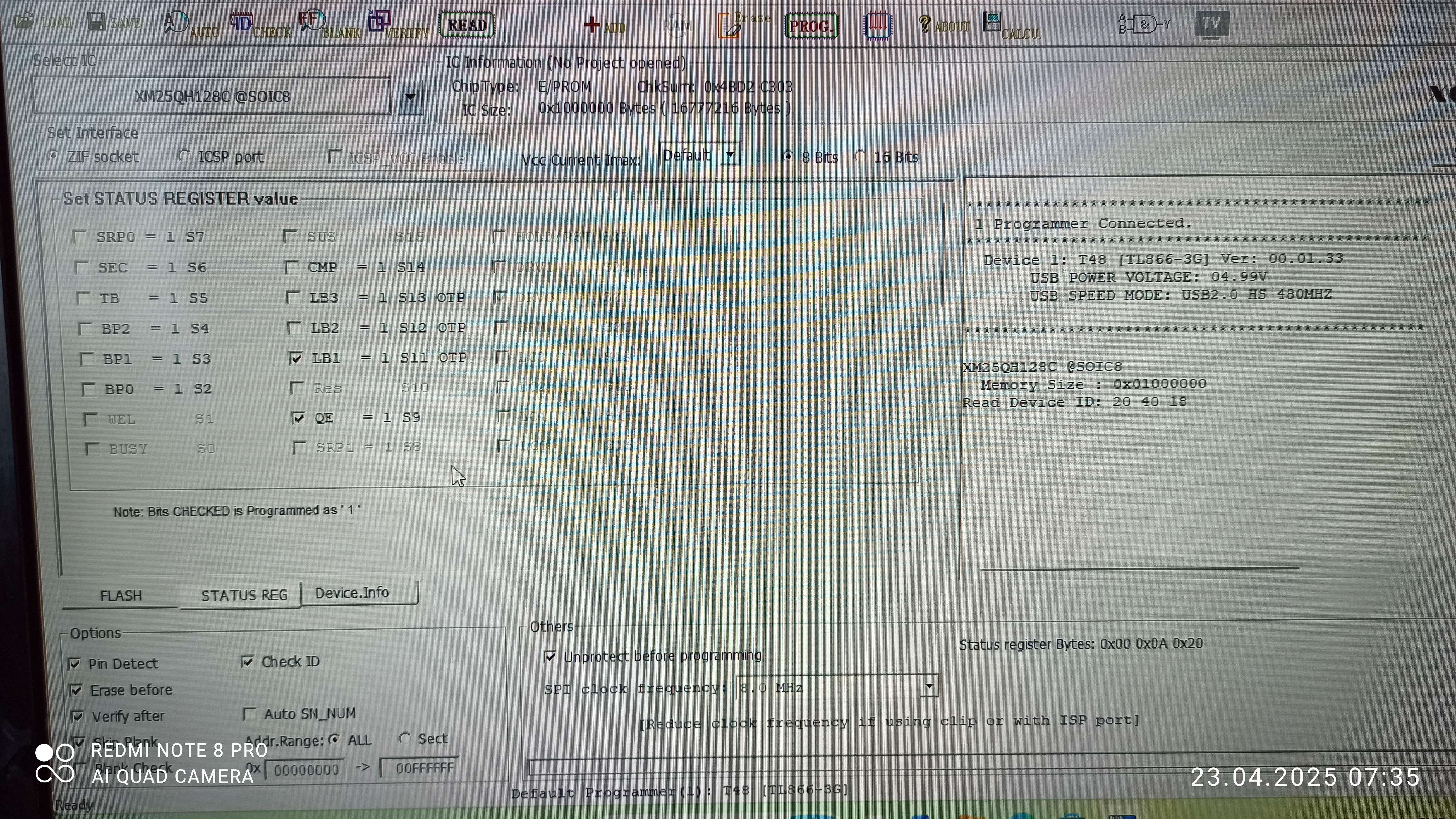У флешки имеется ОТР область, файл размером 1кб добавлен в архив.