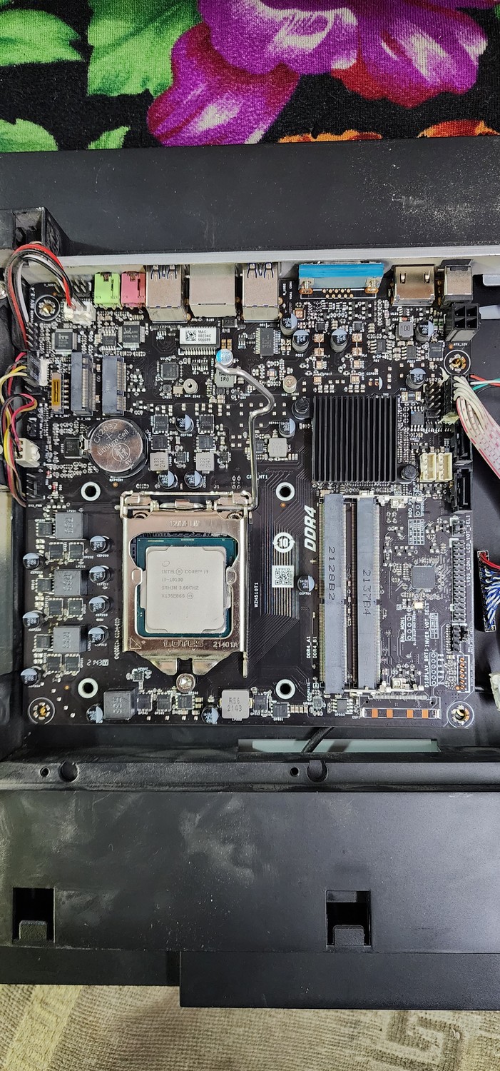 Моноблок dHP E270, внутри mini-itx плата, конкретно эта настроена на питание 19в 5а (что не соответствует информации с корпуса!!!!!) Полностью рабочий, пришел на замену ссд Тип ссд м.2 (pci-e/sata) выставляется синхронно двумя джамперами JC2/JC3 около wifi модуля. Табличка положений над батарейкой CMOS.