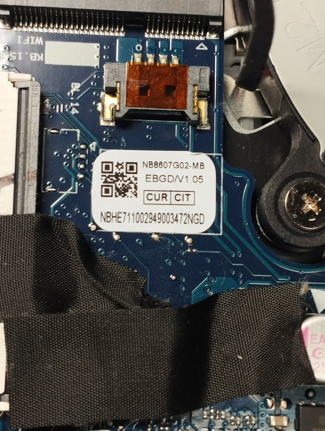 Пришел ноут, сам выключается, при разных обстоятельствах. После недолгих манипуляций выявили виновника - залитая клавиатура (кнопка включения на ней, но ноут включался на любую клавишу, кроме кнопки PWR ON). Отключили клавиатуру, для старта замкнуть кратковременно на разъёме клавиатуры два крайних контактов слева (снята задняя крышка, аккум сверху). Дамп bios без исправлений, версия 1.28.