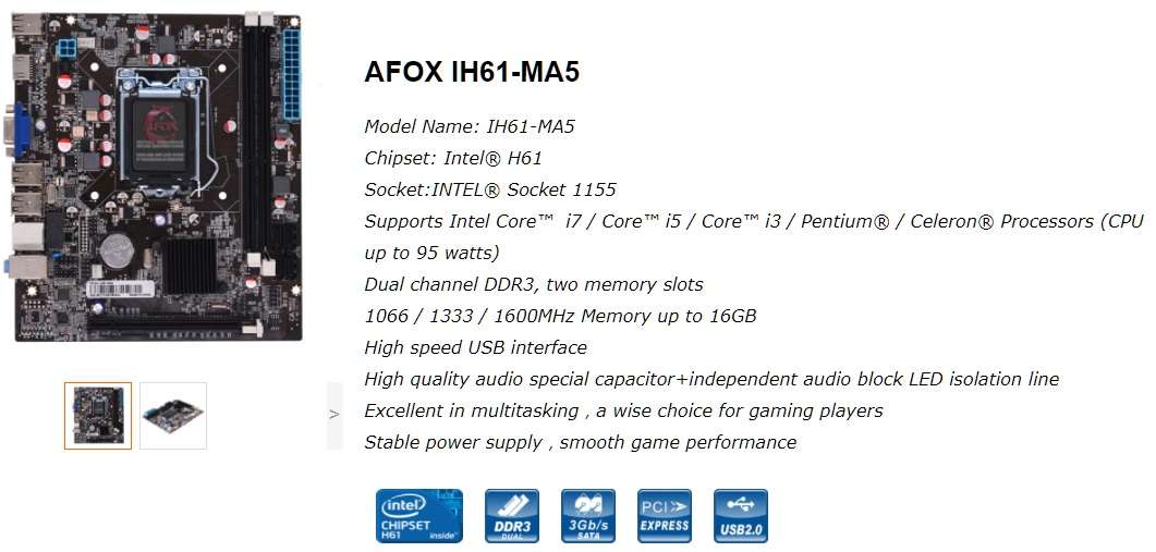 AFOX IH61-MA5 Шасси (Main Board): H61v3.00