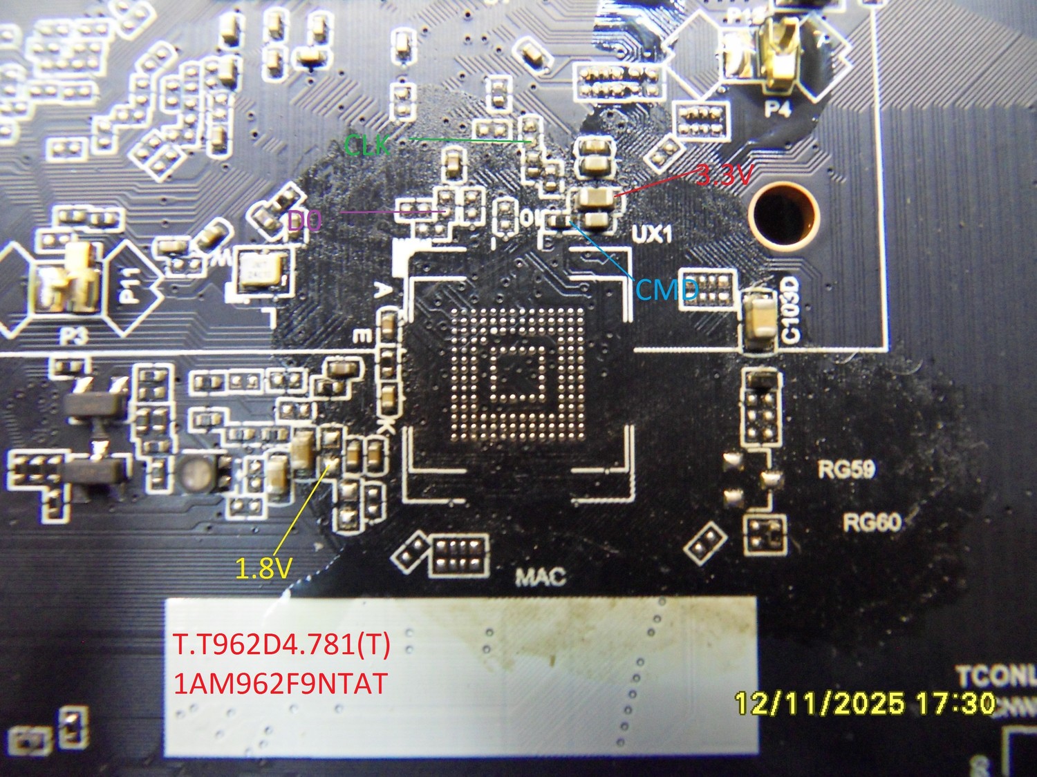 Телевизор прошит по USB чистой прошивкой, после выпаял микросхему памяти и снял дамп. Дамп был прописан в другую микросхему памяти и проверен на этом же тв. Память 4gb.