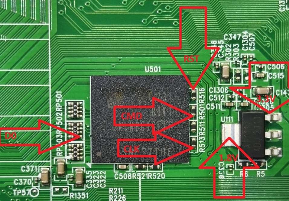 Телевизор прошит через USB, запущен и проверен, после чего выпаяна EMCC THGBMHG6C1Lbail Полностью считал прошивку с конфигом и CSD, так же в архиве лежит прошивка для USB и фотки снятой EMMC. Вдруг кто-то захочет прошить по ISP