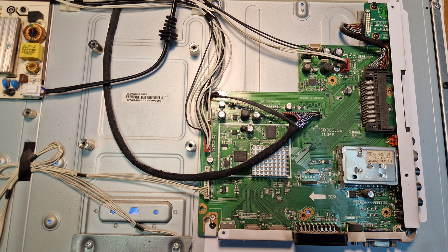 Плата с телевизора с разбитой матрицей. Аппарат включался.