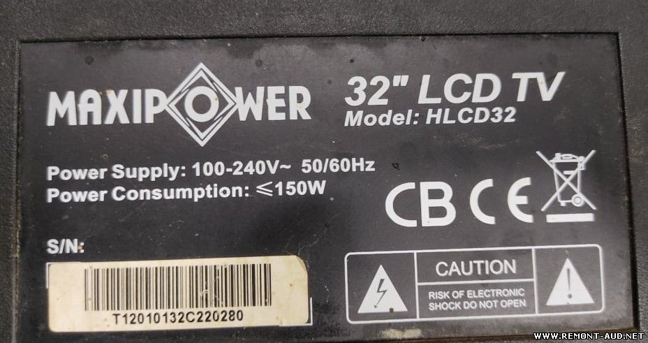 MAXIPOWER LCD MODEL : hlcd32 main-TVC.MS6M181.4 VER1.2 W25q32V panel-LTA320AP29