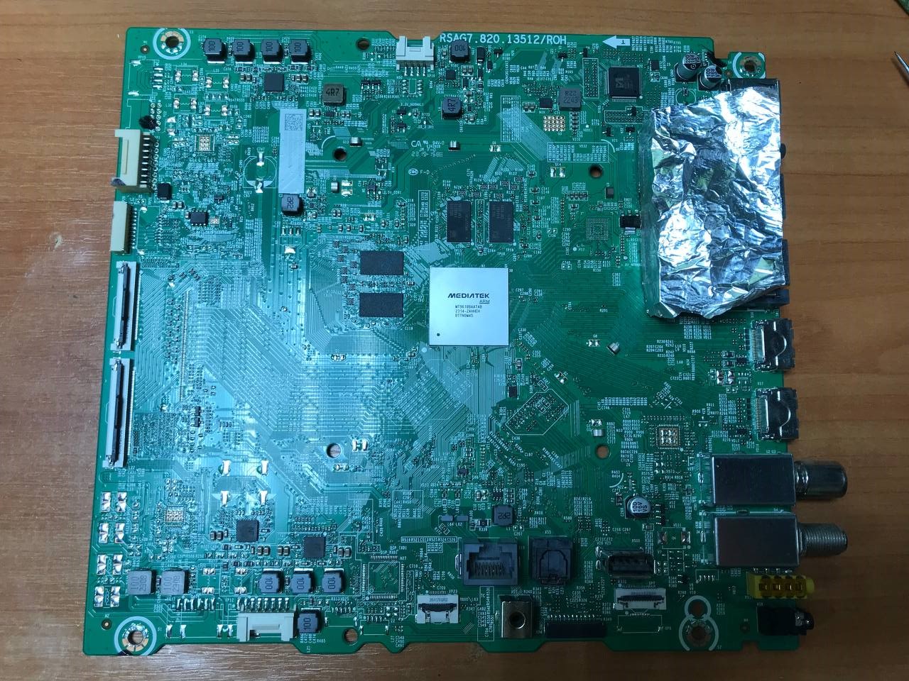 Прошивка считана с рабочей материнской платы с ТВ с битой матрицей. Процессор/EMMC были сняты для изучения схемотехники шасси/возможности установки на другое, немного отличающееся. После все было запаяно на оригинальную плату и осталось рабочим.