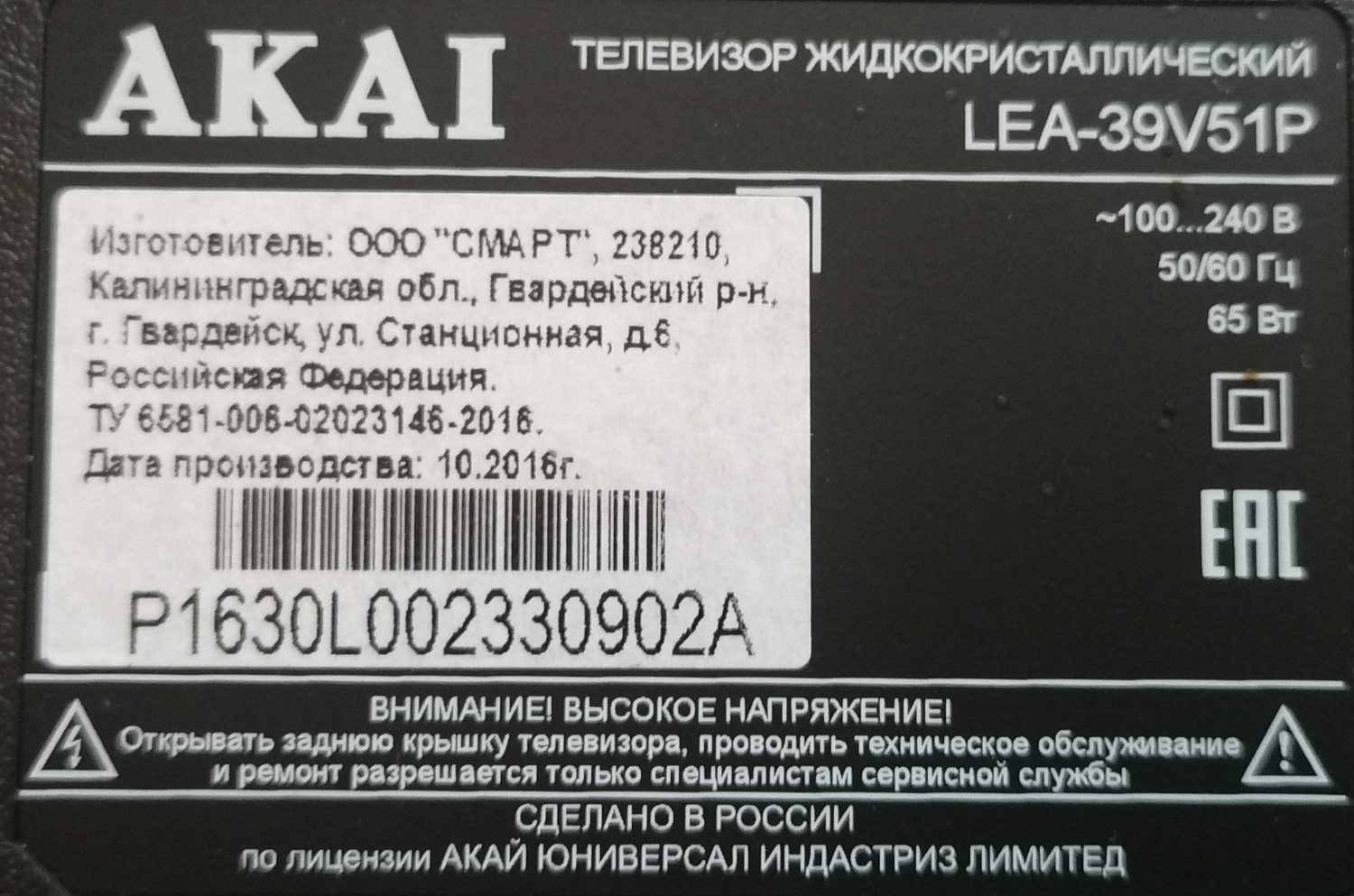 AKAI LEA39V51P Шасси (Main Board): TP.S512.PB83