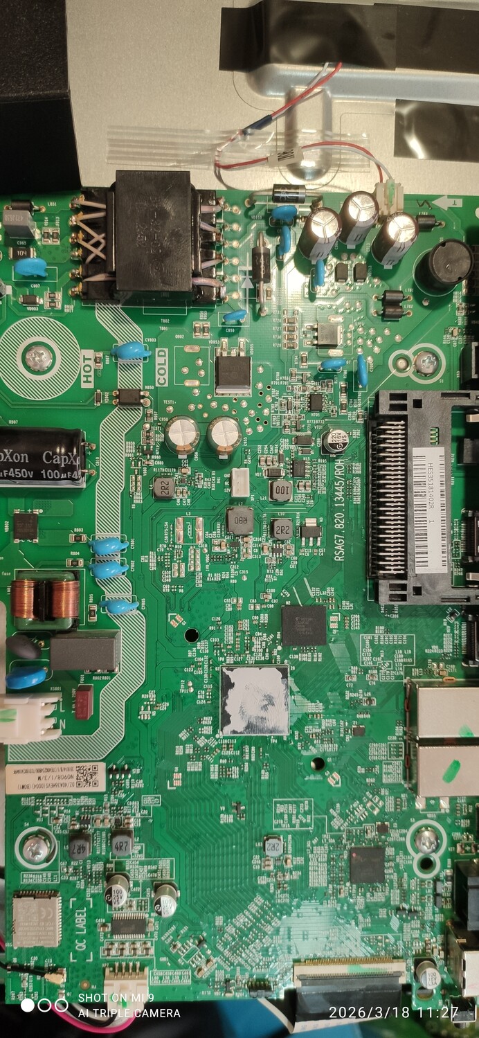 Прошивка считана с рабочей материнской платы с ТВ с битой матрицей. Процессор/EMMC были сняты для изучения схемотехники шасси/возможности установки на другое, немного отличающееся. После все было запаяно на оригинальную плату и осталось рабочим.