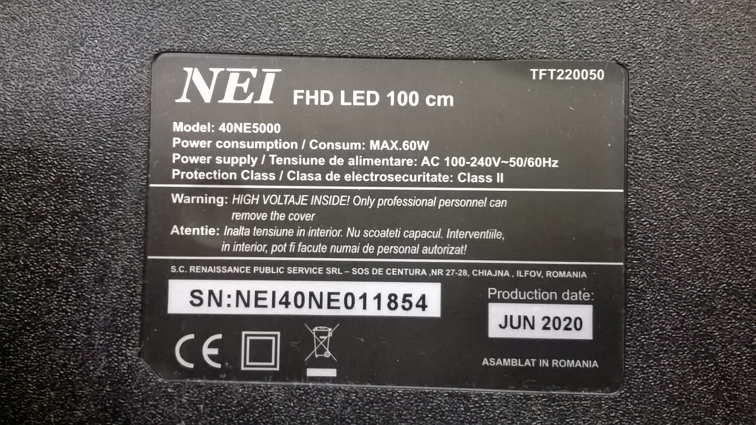 NEI 40NE5000 Шасси (Main Board): cv3663c-a32