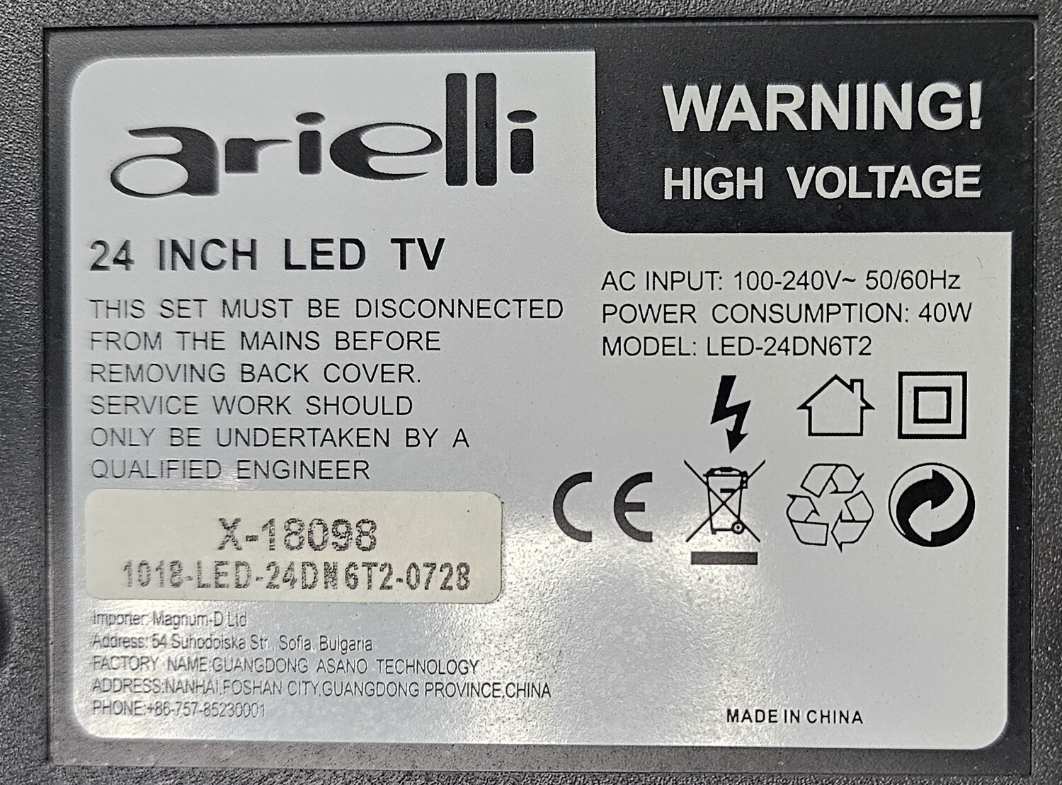 Arielli LED24DN6T2 Шасси (Main Board): TP.MS3663S.PA671