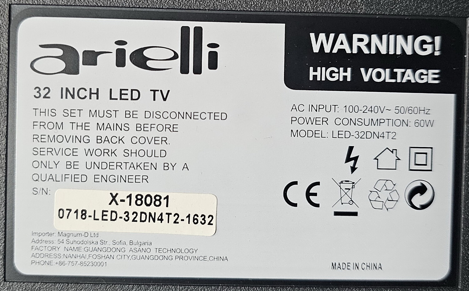 Arielli LED32DN4T2 Шасси (Main Board): TP.MS3663S.PB818