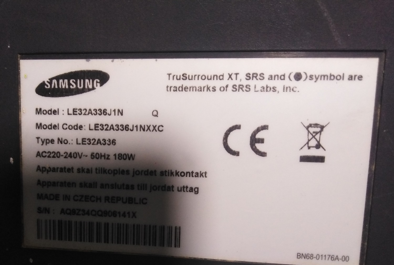SAMSUNG LE32A336J1N MAIN BOARD BN41-01048B PANEL T320HA01-BA 24_256 MX25L1605