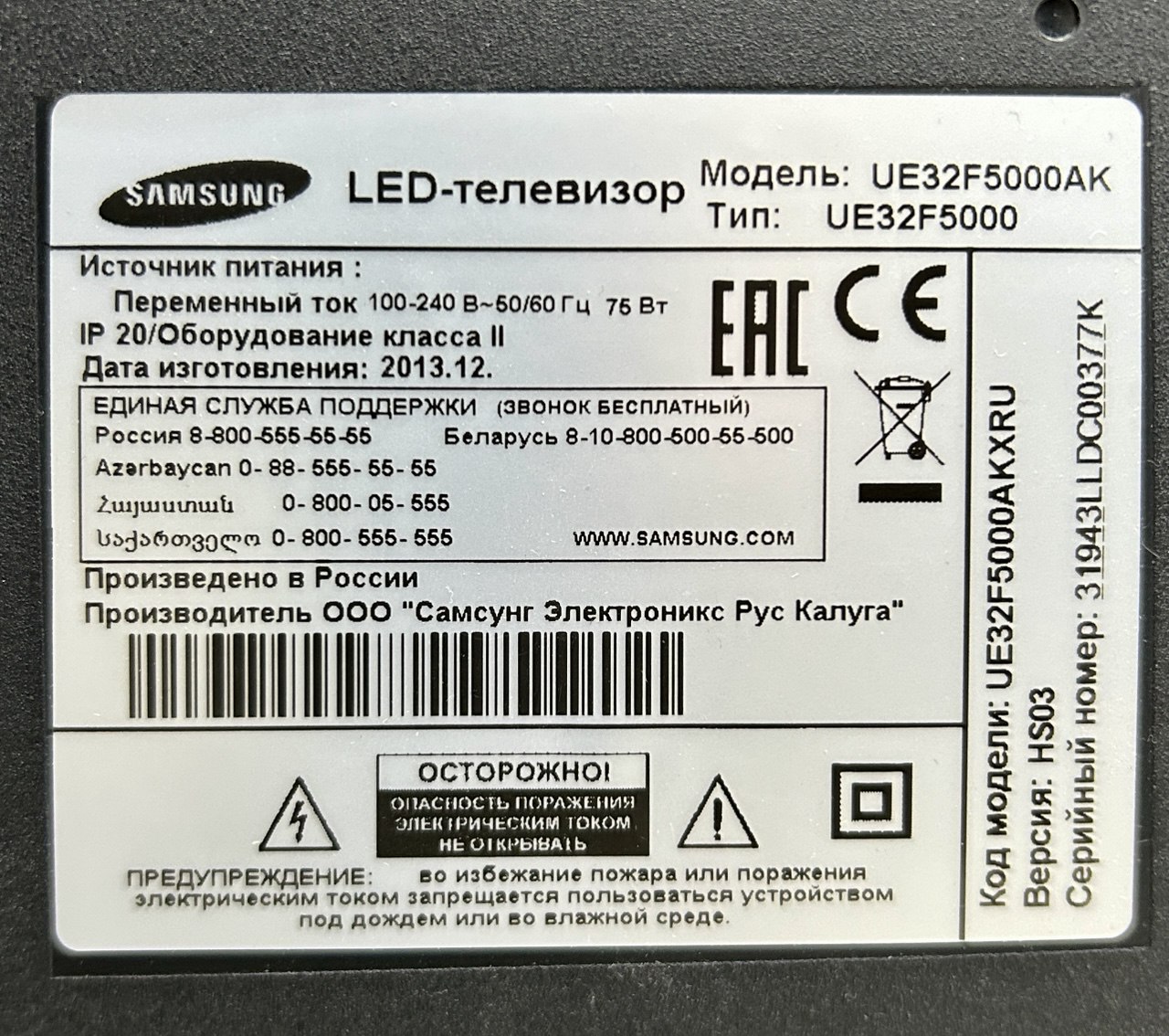 SAMSUNG UE32F5000AK Шасси (Main Board): BN41-01955