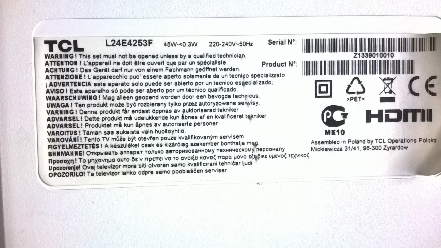 TCL L24E4253F Шасси (Main Board): 40-mt31l1-maf2hg