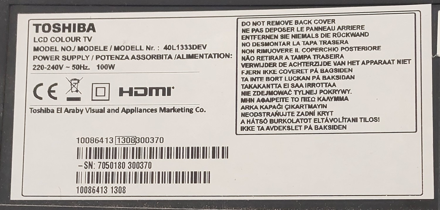 TOSHIBA 40L133DEV Шасси (Main Board): 17MB95S-1