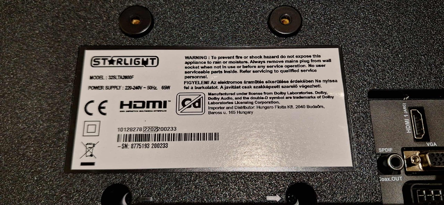 STARLIGHT 32SLTA2000F Шасси (Main Board): 17MB140