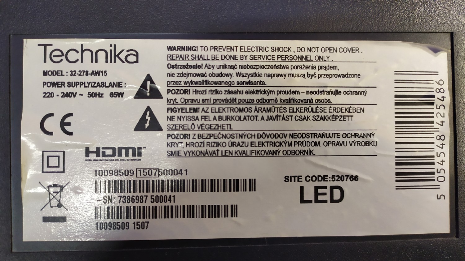 TECHNIKA 32-278-AW15 Шасси (Main Board): 17MB82S
