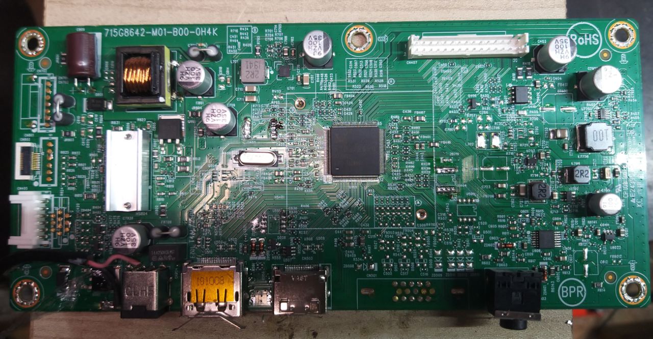 Монитор поступил с отсутствием картинки через HDMI. Определяется. Думает, что есть сигнал HDMI, но экран черный. VGA работает. Причина неисправности - физическая неисправность CPU. Данная прошивка прекрасно работает в других "исправных" собратьях этого монитора.