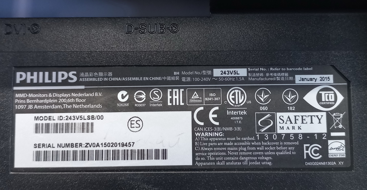 Philips 243V5L Шасси (Main Board): 715G5863-M01-000-004C