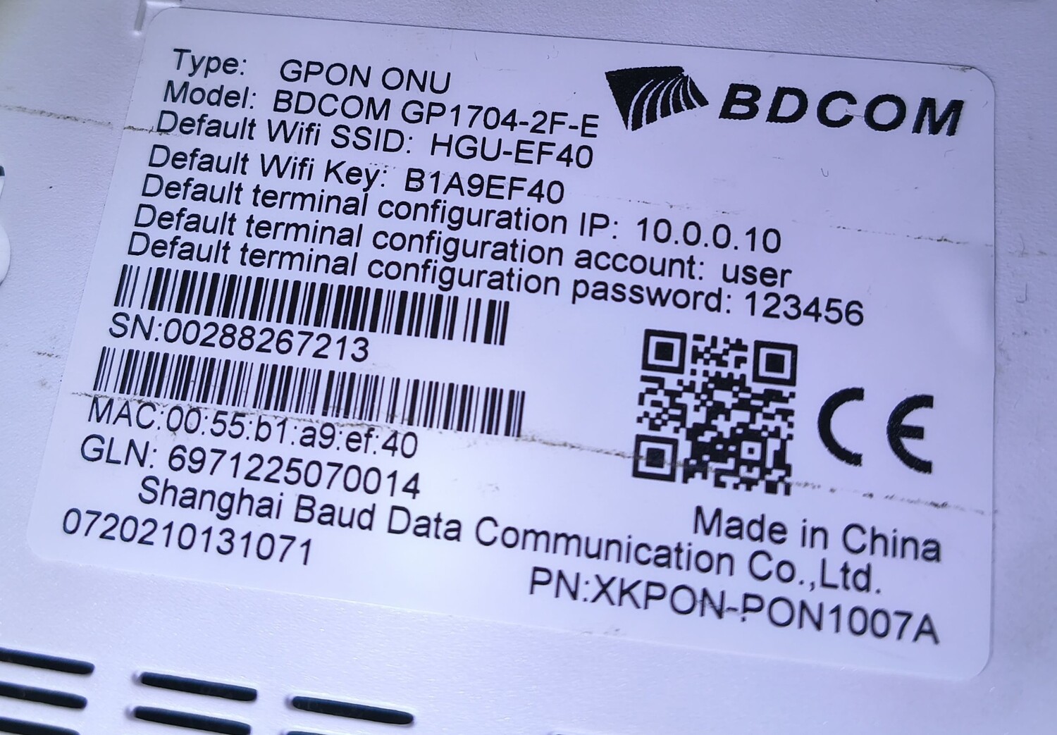 BDCOM GP1704-2F-E Шасси (Main Board): TWCGPON992 GPON ONU