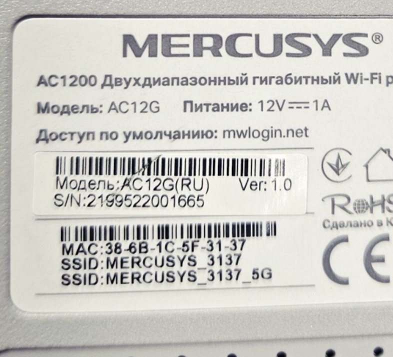 Mercsys AC1200 AC12G V1 (RU) Шасси (Main Board): 2050501275