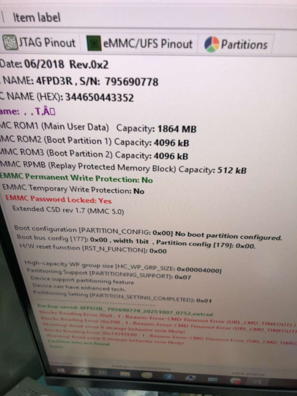 how to read emmc? it's locked with password.