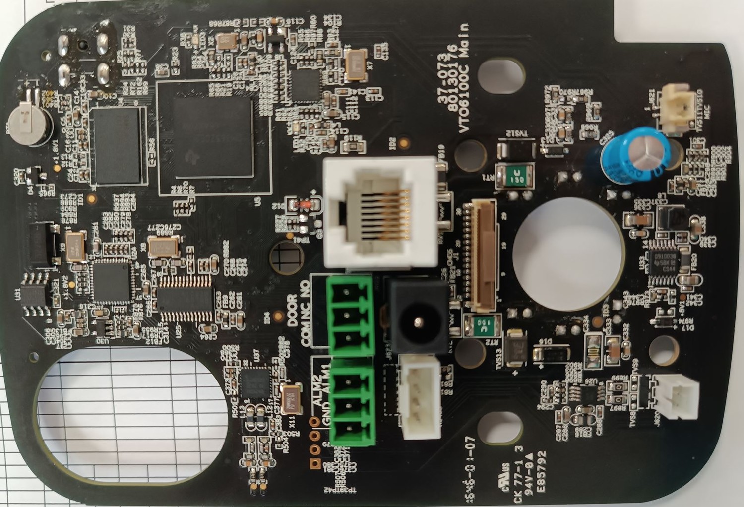 Пришла на ремонт заблокированная панель, я ее сбросил до заводских. Пароли все стандартные, прошивка считана лично и проверена! Маркировка на плате: 37-073, 80130176, VTO6100C Main. К сожалению модель процессора забыл посмотреть.