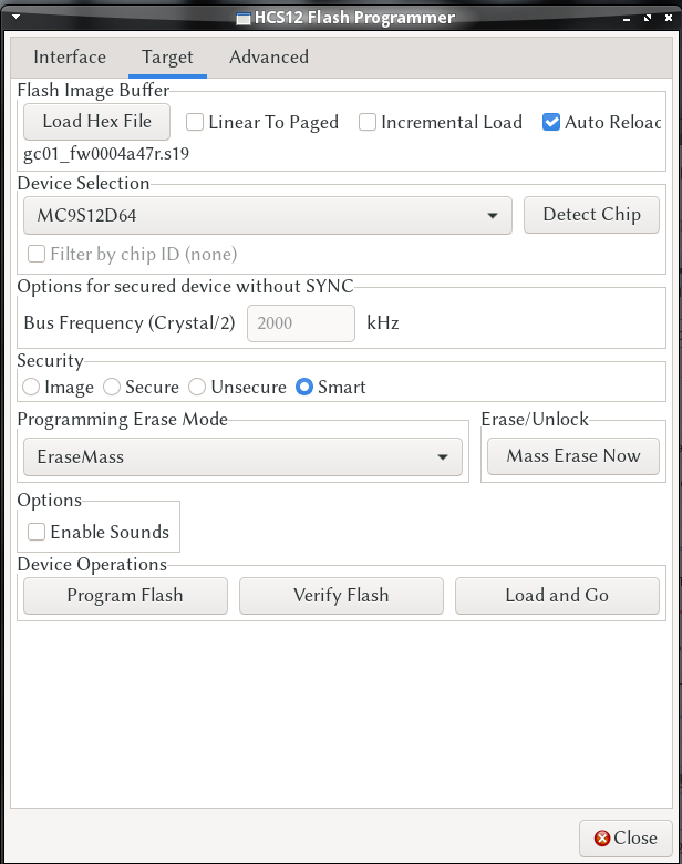 Для турникетов Gunnebo SpeedStile 1200/1800 (возможно 1500/1600, не на чем проверить). Шить программой HCS12FlashProgrammer из комплекта ПО USBDM (свободно распространяемое). Для системы Windows дополнительно установить драйверы, скачать там же где и ПО, в названии пакета присутствует WinXP, но по факту подходят даже для Win11. Дамп снимался программой MemoryDump из выше упомянутого комплекта ПО, файл настроек с правильными регионами памяти для данной микросхемы присутствует в архиве.