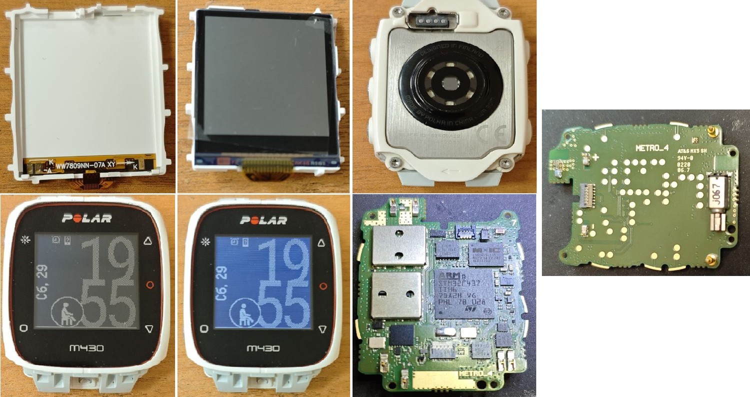 Часы: Polar M430 Шасси: METRO_4 Процессор: STM32F437 Память: MX25L6435E (WSON8 6x5)