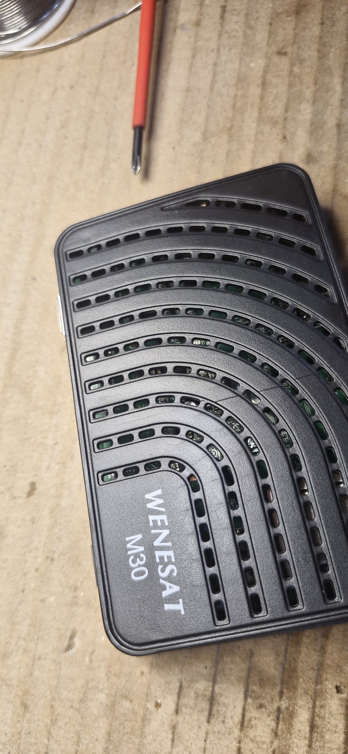 Редкий девайс. С выходом Scart. Были пульсации. Вёл себя некорректно. Переставал работать пульт, самопроизвольно перезагружался. Причем все емкости соответствовали и ESR тоже в норме. Поменял все!!! кондюки. Заработал нормально. Сбросил на заводские. Слил прошивку. Залил в другую шлешь для проверки. Полёт нормальный. Шил Программой SiberiaProg-CH341A. При считывании и проверке с помощью MiniPro ошибка 1го байта. Код универсального пульта 010.