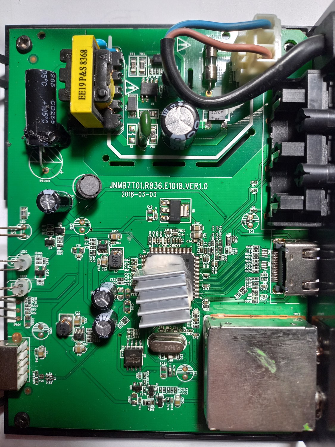 модель:DC902HD Версия ПО:MSD20150525 HW Version:JN7T01.MXL608.1018.V1.1 --------------------------------------------------------------------- Шасси JNMB7T01.MXL608.B1018.VER1.1 2015-05-19 Процессор MStar MSD7T01(U6) Флеш KH25L3206E(U7) Тюнер MXL608(U1) Блок питания PN8136(U2)