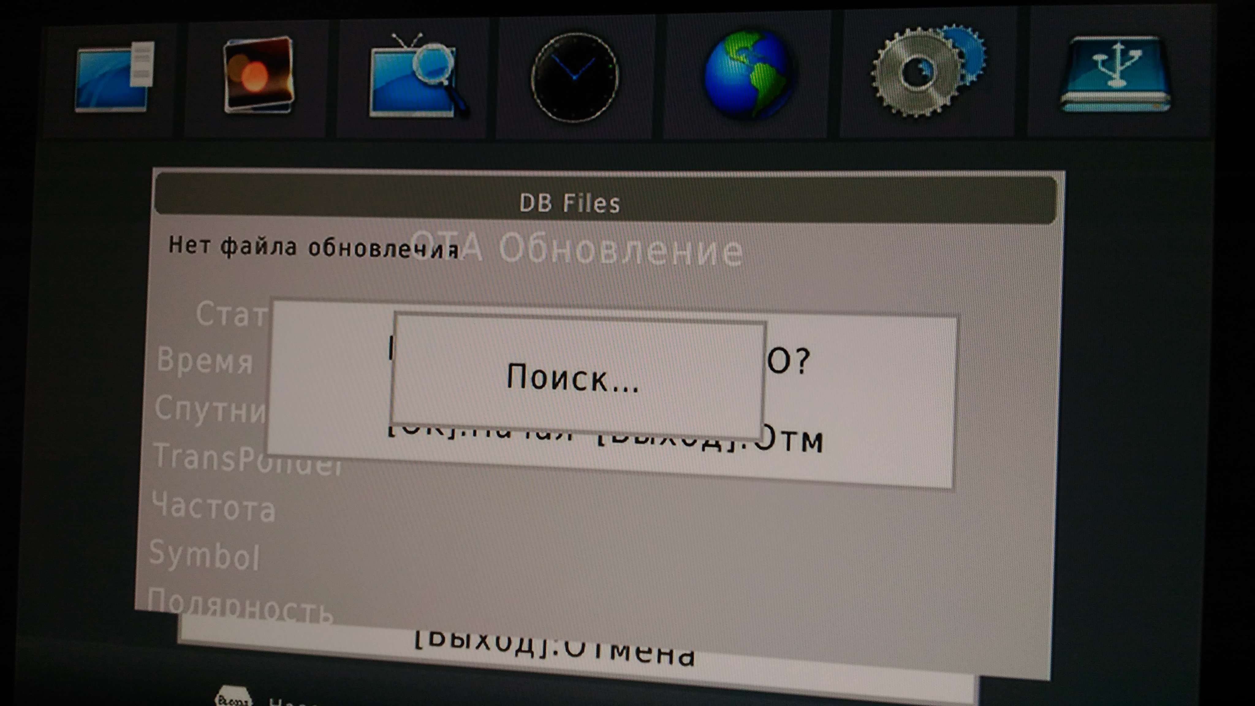 Рабочая прошивка.С другой заставкой и более свежей версией чем тут. Что касается проблем у emer7, то он скорее всего заменил родную Norflash (установленную на заводе) на аналог и у него сработала защита от использования ПО в сторонних приставках. Первый вариант проявления защиты , как emer7 написАл выше, - при сканировании каналов из первоначального меню приставка перезагружается. Второй вариант - при нажатии кнопки MENU приставка наглухо зависает с картинкой как в прикрепленном файле.