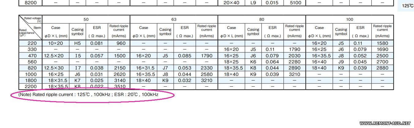 Это неверно. Электролитические конденсаторы проверяются на частоте F=100Гц. На частоте F=100кГц значения ESR будут в сотни, если не в тысячи раз больше приведенных в таблице.