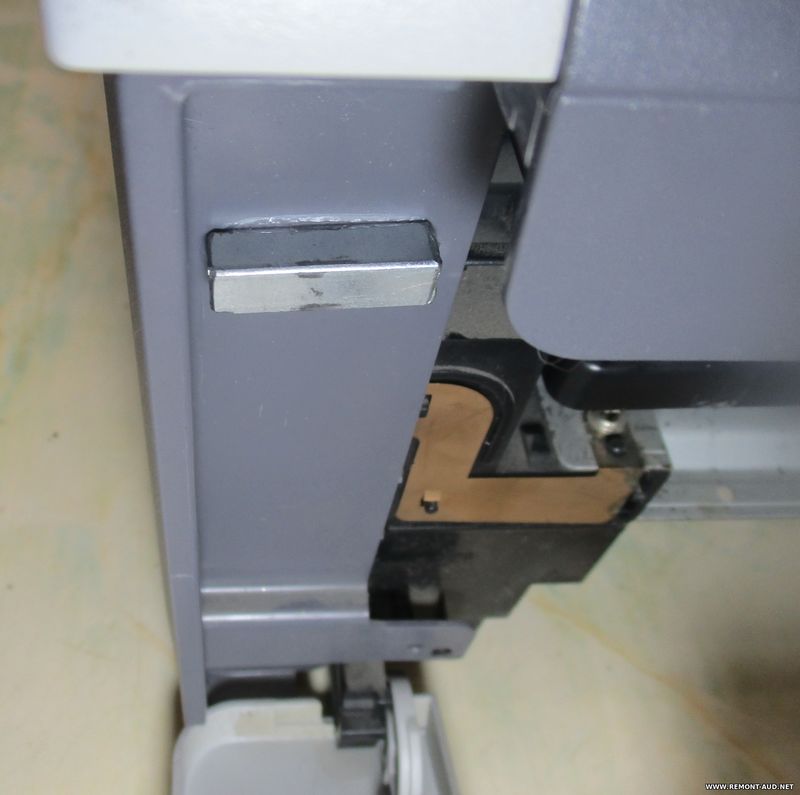 Сломались защёлки крышки картриджа. Додумался до этого колхоза: Завалялись у меня мебельные магниты. Думаю дай приколхозю. Магниты приклеил к крышке на супер клей, правда пришлось гравером стачивать технологические пятаки на крышке. Клей хорошо плавит пластмассовую крышку. Затем осталось замерить зазор между магнитами и боковинами принтера. Изощрился, он оказался 7 мм. В моем хламе нашел квадраты от замков входной двери, они оказались такого размера. Ну, а далее тело рук каждого. Кто на что горазд. Попилил квадрат как понравилось, и приклеил тем же клеем. Результат превзошёл все ожидания! Получилось даже лучше чем было!