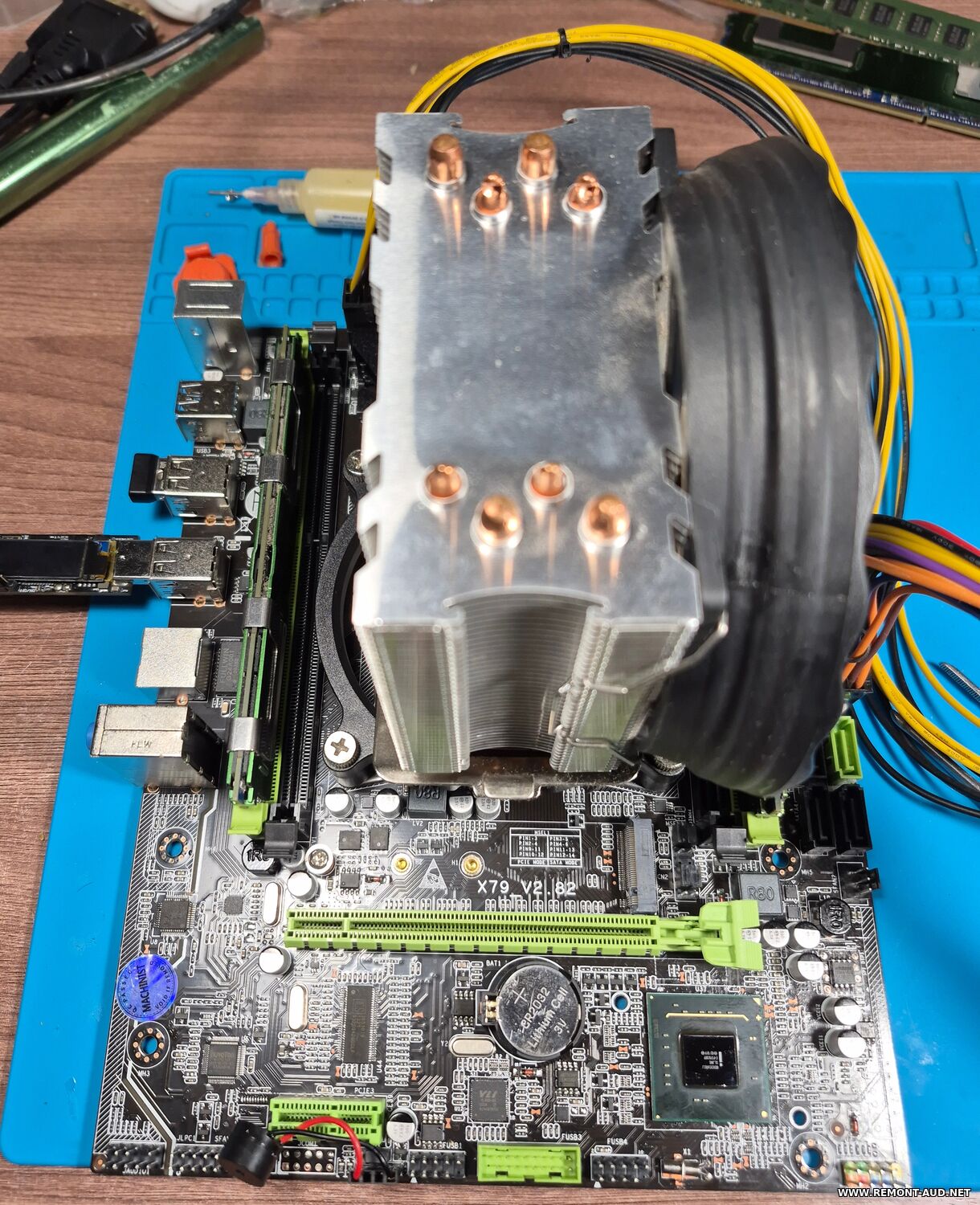 Материнская плата Machinist X79_V2.82. Флэш 25Q64JVSIQ. Хаб BD82C602J. Материнка запускается, нет инициализации, спикер молчит. Подключаю материнку к БП. Осциллографом на 5 и 6 выв. флэш примерно 760mV, после нажатия кнопки "старт" очень короткая пачка импульсов амплитудой 3,4V, и падает до 0. Больше никакой реакции, процессорный кулер работает. Генерация на кварцах есть. Замеры сопротивления хаба BD82C602J на керамике распаянной на подложке хаба дало 21 Ом.