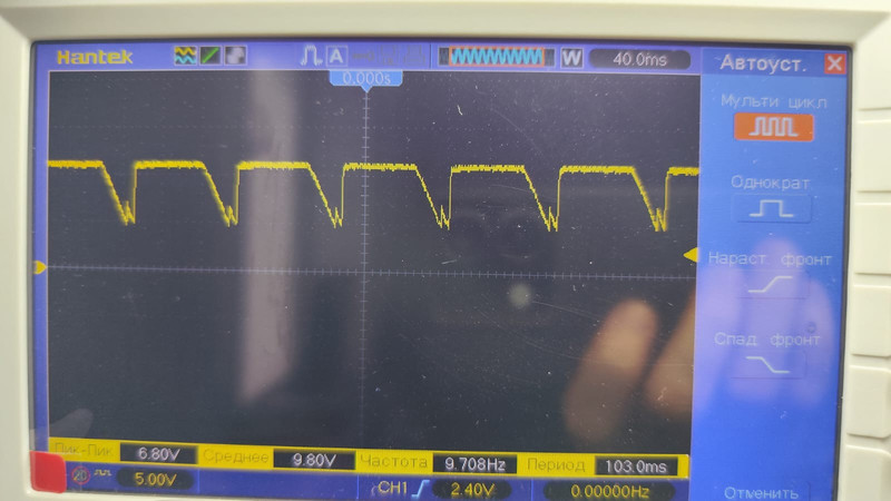 Телевизор после грозы. Заменил ШИМ DP2308H, пробитый стабилитрон VZ806, оптопару 816, TL431. Блок питания запустился, прекондей работает, на конденсаторе выдаёт 390В, а на выходе БП вместо 12В выдаёт 9В и слышно что БП тикает как часы, прикладываю осциллограмму выхода.