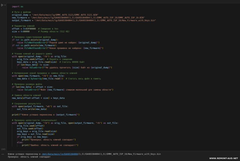 EMMC перенос ключей с помощью Python прошиваем успешно