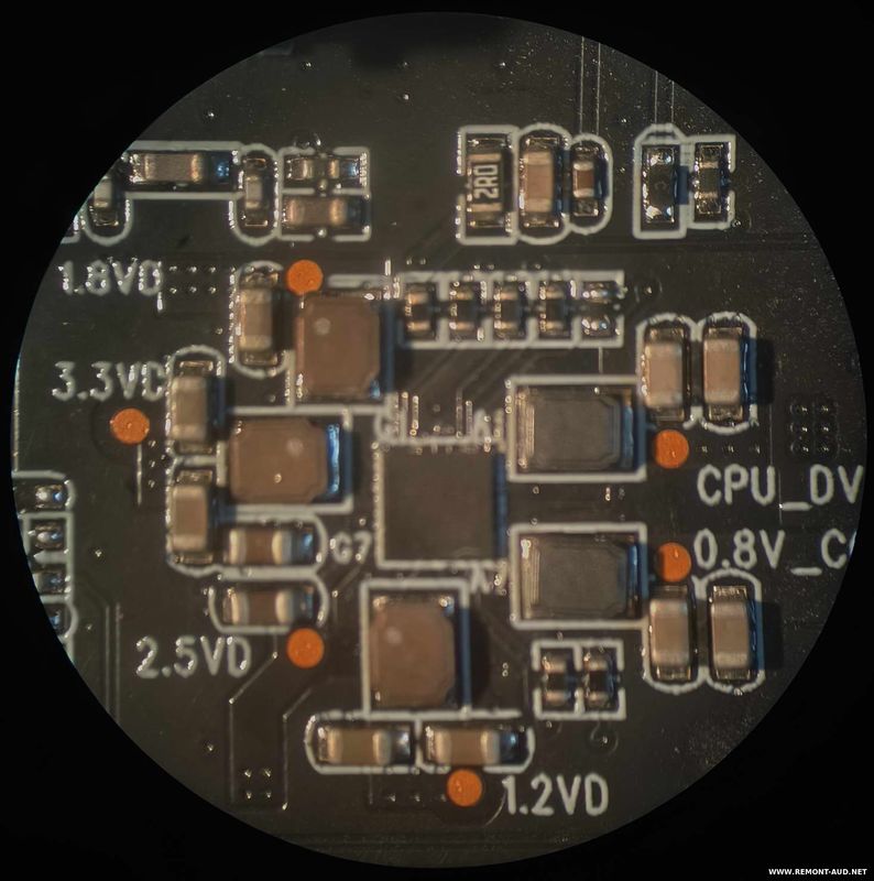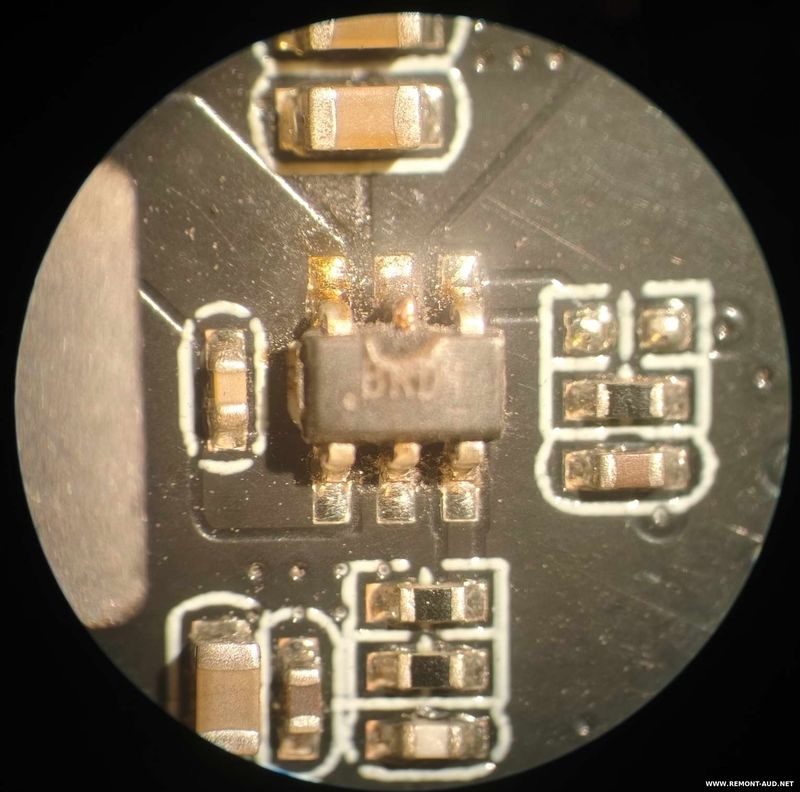 Вместо 12 вольт воткнули 24. Два преобразователя SOT23-6 с маркировками BRDf и DuCE выгорели. Оба имеют цоколевку 1 - BS 2 - GND 3 - FB 4 - EN 5 - Vin 6 - SW По базе DC-DC вроде бы это ETA8103 и ETA8113 соответственно, отличаются частотой и опорным напряжением. Выпаял, выход DuCE идет на основной преобразователь, по этой линии единицы Ом. Вот этот DC-DC идентифицировать не могу, корпус BGA 3х3мм, маркировка AZ16Z. По выходам преобразователя аномально низких сопротивлений нет, надеюсь проц живой. На фото маркировку не видно, для лучшей читаемости решил протереть спиртом, а верхний слой стерся вообще и корпус стал сплошное стекло без надписей. Впервые с таким столкнулся, чтобы спиртом стирался слой с маркировкой.