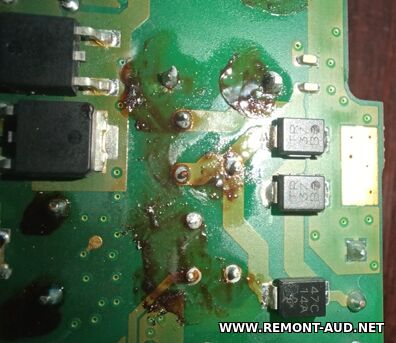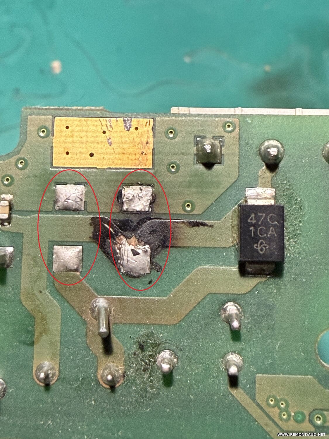 Siemens PXC100.D плата после воды. на входе питания 24V отсутствуют 2 элемента. На плате их уже не было. Видны следы замыкания. Подскажите кто знает какие элементы должны стоять, на данном месте. Так же обнаружен пробитый элемент с маркировкой tr44 Подскажите пожалуйста по данным элементам.