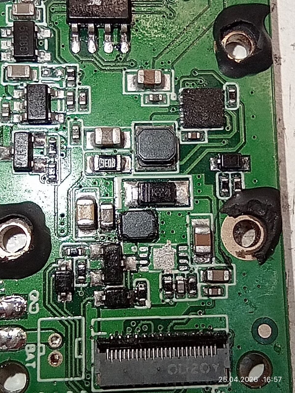 Всего в этом прицеле 3 платы. 1-плата центральный процессор с памятью, вторая кнопки упарвления и 3-я плата зарядки(как раз на ней взорванный элемент). На обратной стороне платы есть микросхема Macrosilicon MS9123. она по ходу отвечает за дисплей, но взорванный элемент с обратной стороны там где зарядное TAPE-C.