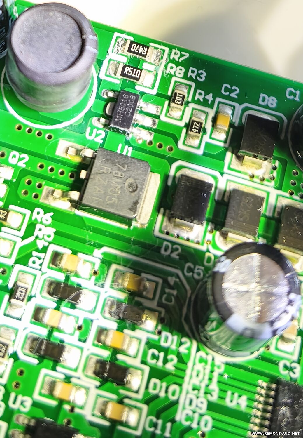 На основной электрод поступает постоянное напряжение 15 вольт через реле прямо после диодного моста, а для вспомогательного формируется преобразователем в корпусе SOT89-5L с маркировкой MH5016 в верхней строке и С2008 в нижней.