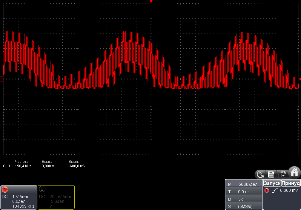 Возник вопрос на этапе проверки U303-D. На её выходе, при отсутствии сигнала, наблюдается что-то похожее на возбуд с частотой примерно 2500Гц.