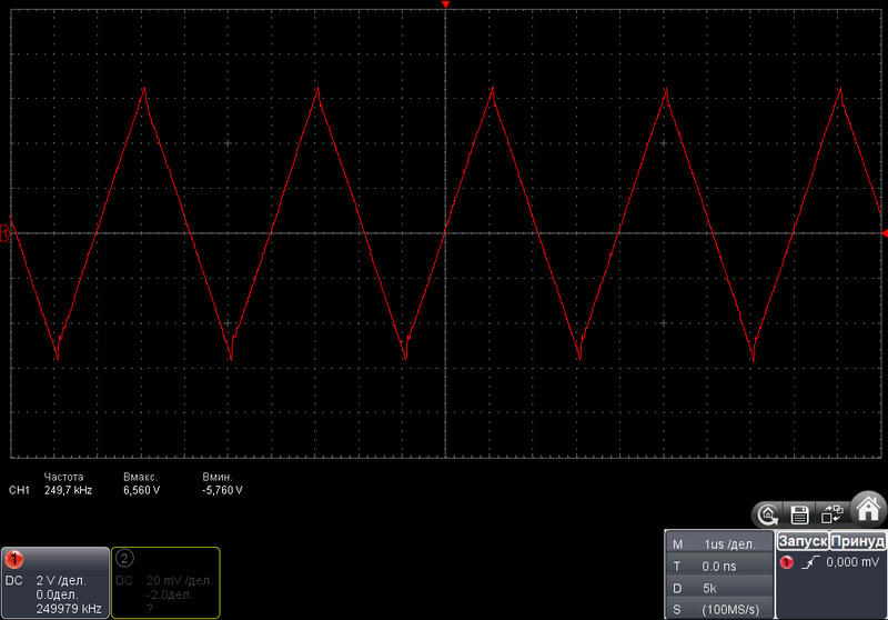 Если подтянуть 13 контакт U303-D к общему, то появляется чистый 0 на выходе (14 контакт). Также, если подтягивать какой-нибудь из конденсаторов в цепи обратной связи, то на выходе становится 0. При подаче звукового сигнала, на выходе эта же частота начинает изменяться согласно частоте звука. Так и должно быть? Мне казалось, на выходе должен быть чистый меандр. После чего он должен суммироваться с частотой LF_TRIANGLE.