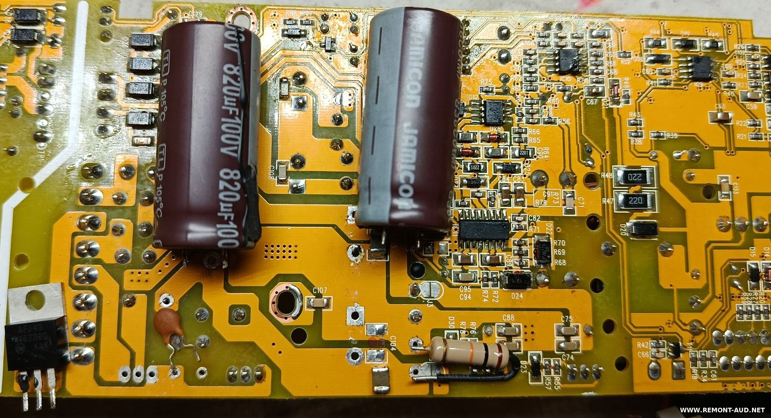 Линия +80В относительно нормальная, если не считать, что один из двух конденсаторов подустал.