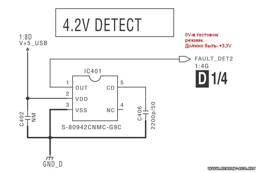 Мои познания в ремонте данного вида техники: Занимаюсь ремонтомНаличие схемы: Есть в свободном доступе. Данный контроллер не включается.Часть схемы и информации находятся в SM от модели DDJ-SB. При снятии резистора R420,отключается детектор ошибок рабочих напряжений,и аппарат включился в аварийном режиме. Напряжение всех DC-DC-в норме. FAIL DET- +3.3V FAIL DET 2-а вот тут почему то 0.Должно быть +3,3V.Тут используется супервизор IC 401 4,2V(S-80942). На входе у него присутствует +4V,на выходе-ничего. Я так понимаю,что на выходе у него должно быть напряжение 3-4V,и получается,что он неисправен? Я правильно думаю? В этом аварийном режиме часто мигает левая кнопка CUE а правая-редко.Не знаю связано ли это с индикацией неисправности или нет.