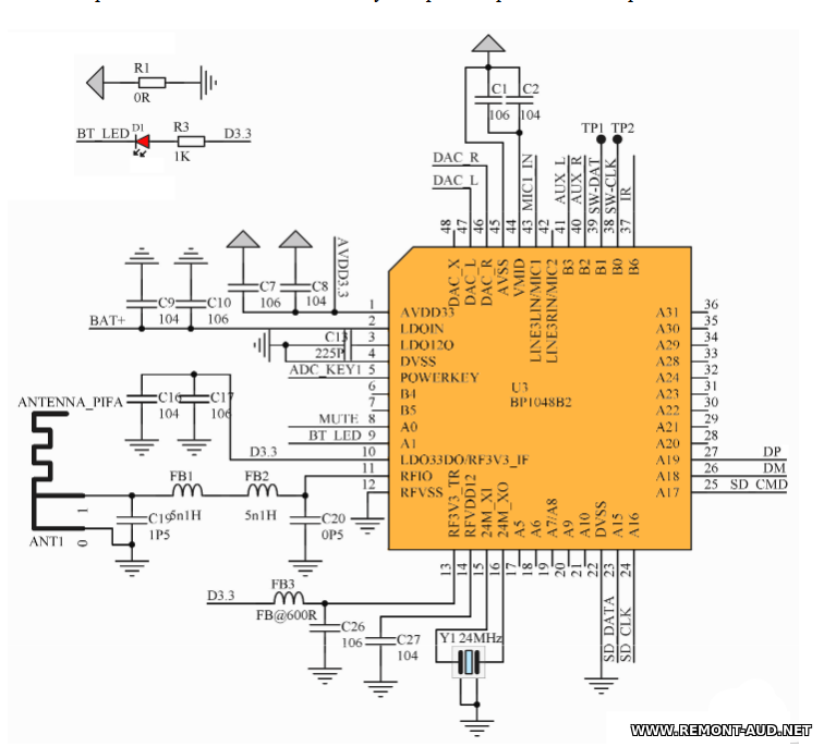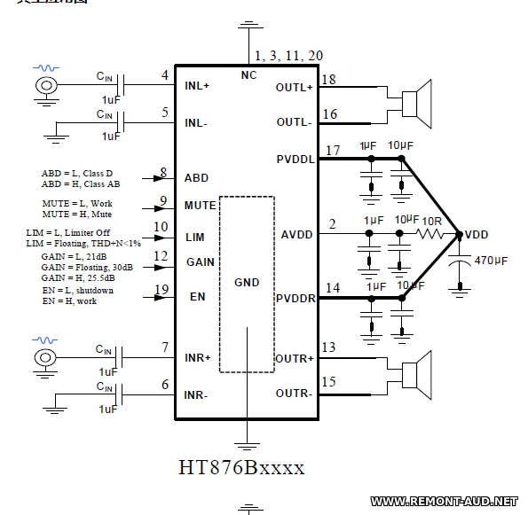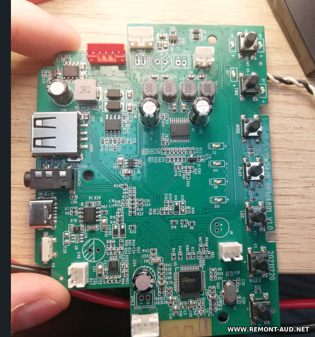 Мои познания в ремонте данного вида техники: Занимаюсь ремонтом Наличие схемы: Нет. Добрый день. Есть портативная колонка Wireless Speaker GW542B — звука нет, слышен только слабый треск из динамиков. Колонка собрана на: • усилителе HT876B http://motor-drive-ic.szczkjgs.com/products_3790.htm • процессоре BP1048B2 https://go-radio.ru/bp1048b2-skhema-i-datashit.html Питаю её от ЛБП, потребление около 200 мА, ничего не греется. На процессоре присутствуют 5В, питание усилителя — 8В. Линия MUTE имеет 3,3В или 0В в зависимости от режима. Конденсатор по питанию процессора проверил. Усилитель — D-класса, с цифровым управлением. Как правильно разделить проблему между УНЧ и процессором? Можно ли проверить сигнал осциллографом, и что именно стоит измерить в первую очередь?